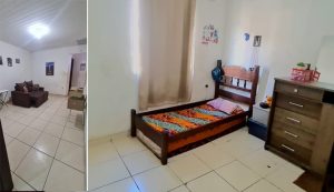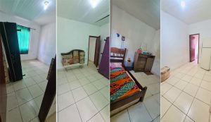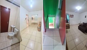 Térreo: 2 apartamentos, um com um quarto, um com 2 quartos, ambos com sala, cozinha, banheiro, garagem, 2 duchas e 3 banheiros.